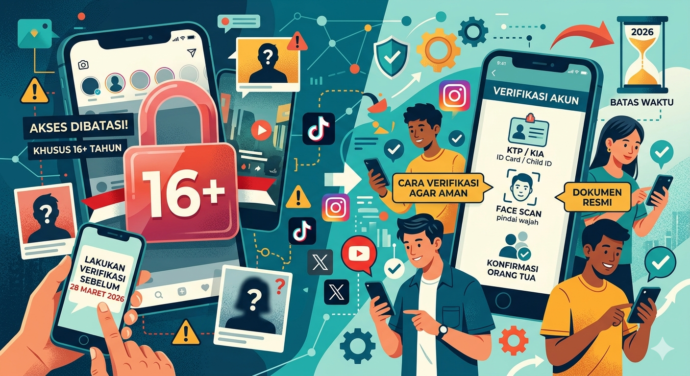 ​Aturan batas usia media sosial Maret 2026 adalah langkah besar pemerintah dalam mengatur ekosistem digital di Indonesia. Meskipun terkesan rumit, verifikasi ini bertujuan jangka panjang untuk keamanan pengguna. Segera lakukan validasi data Anda sebelum tenggat waktu berakhir agar akun kesayangan Anda tidak terhapus.