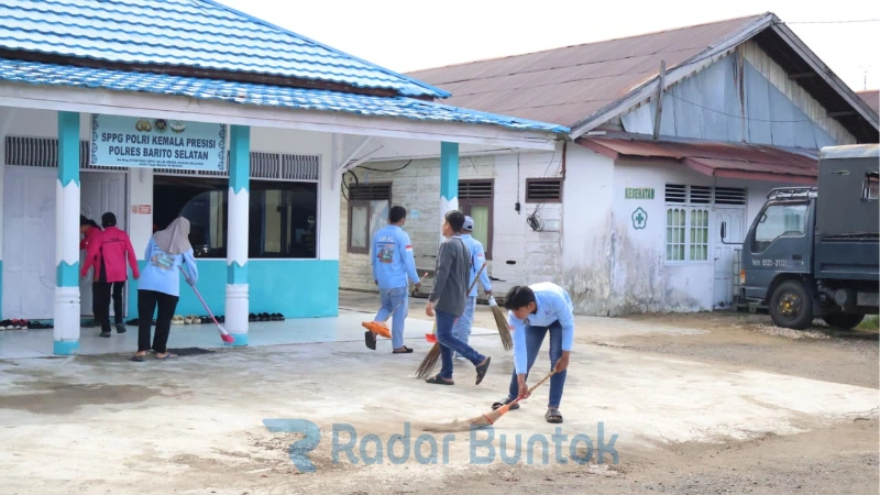BUNTOK – Kapolres Barito Selatan (Barsel), Polda Kalimantan Tengah (Kalteng), AKBP Jecson R Hutapea memimpin kegiatan korve pembersihan Dapur SPPG Kemala Presisi Polres Barsel, Sabtu (7/2).