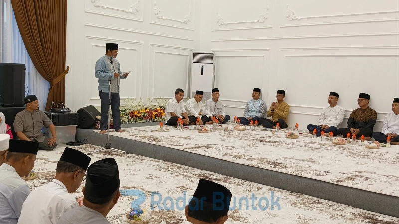 Wabup Barsel Khristianto Yudha menyampaikan sambutan saat kegiatan buka puasa bersama (Bukber) di Rumah Jabatan Wabup, Buntok, Jumat (13/3) (foto: Radar Buntok/akhmad madani)